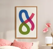 Tre forme dai colori vivaci in rosa, blu e verde si intrecciano elegantemente in un movimento apparentemente senza fine. Questo poster moderno combina energia e armonia in una sovrapposizione trasparente. La composizione ha un effetto dinamico ed equilibrato, ideale per gli spazi creativi, gli amanti del design e gli interni a colori ridotti con aspirazioni moderne.