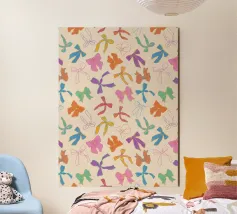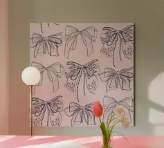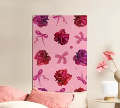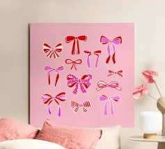 Un motivo giocoso di fiocchi colorati in rosso, rosa, verde acqua, verde lime e pesca, sparsi su un morbido sfondo color pesca con accenti di stelle bianche. Questo disegno allegro e festoso dona un fascino stravagante, perfetto per aggiungere un tocco femminile e gioioso al vostro spazio. Ideale per confezioni regalo, decorazioni ispirate alla moda o per chiunque ami un motivo audace ma delicato. Creato da showmemars