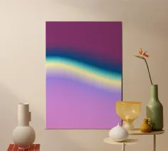 composizione di linee morbide e fluide in viola e giallo alluminio dibond