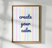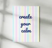"Crea la tua calma" centrata su uno sfondo a strisce verticali in morbidi colori pastello. Semplice design clipart senza ombre, minimalista e chiaro - ideale per vibrazioni calme ed equilibrate con un look moderno.