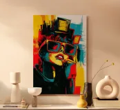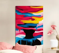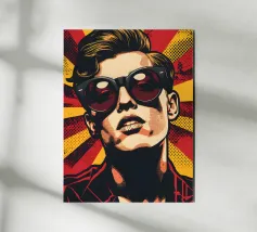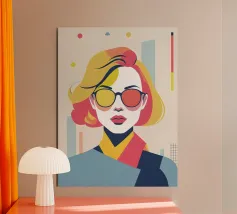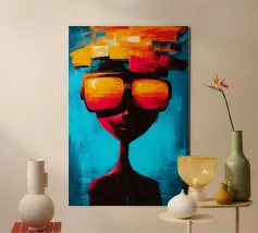 Un ritratto espressivo che unisce il futurismo urbano alla pop art. Gli enormi occhiali riflettono un mondo digitale distorto, mentre il volto risplende nei contrasti di giallo, rosso e blu. Gli edifici spigolosi sembrano nascere dai pensieri, metafora dell'influenza urbana sull'identità. Le pennellate dinamiche e lo stile grafico aggiungono energia e un tocco di estetica cyberpunk alla scena.
