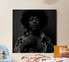 Il puntinismo è uno stile pittorico basato sullo spirito dell'Impressionismo, in cui una serie di punti si unisce per formare un'immagine più grande. Questo stile è fiorito circa 100 anni fa, con artisti del calibro di Signac, Seurat e Baum, e ora Robotic Ewe sta dando nuova vita a questo stile. L'artista di Glasgow ha studiato fotografia e ora si è dedicato alla produzione di remake di manifesti cinematografici classici, fotografie iconiche e opere d'arte intervallate da tipografia e, naturalmente, da punti.