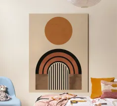 Questo design minimalista è caratterizzato da eleganti linee curve in calde tonalità della terra, dal morbido beige all'audace arancione e nero. Gli archi armoniosi ricordano l'estetica retrò e boho e creano una sensazione di calma e calore. Perfetto per gli spazi abitativi moderni, per gli interni scandinavi o come elemento di spicco in uffici e camere da letto. Questo motivo è versatile e adatto a murales, poster, cuscini, tazze e altro ancora.