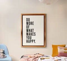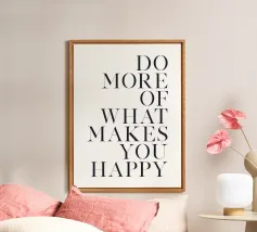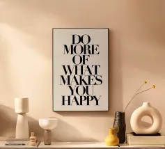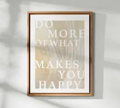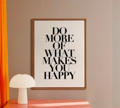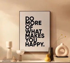 Poche parole e tanta verità! Un design che si adatta al motto della vita. FAI DI PIÙ DI CIÒ CHE TI RENDE FELICE. Fai di più di ciò che ti rende felice! Una tipografia minimalista con un tocco di colore versato addolcisce la vostra giornata.
