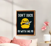 Fate una dichiarazione audace con "Don't Duck With Me"! Questo design sfrontato combina umorismo e atteggiamento, perfetto per coloro che si fanno valere e si fanno valere. Un modo giocoso per dimostrare che fate sul serio