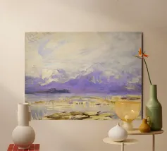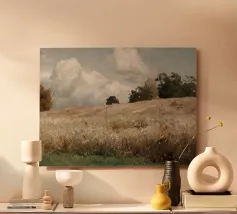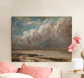 Arte murale del paesaggio nuvoloso, decorazione su tela del paesaggio nuvoloso.