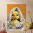Un simpatico anatroccolo fa capolino da sotto un morbido asciugamano bianco. Le sue soffici piume gialle e i suoi occhi curiosi creano una scena adorabile e affascinante.