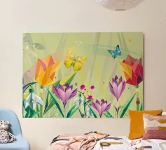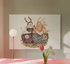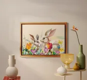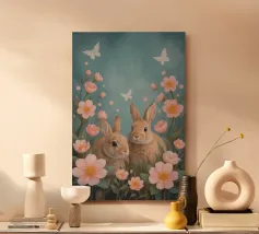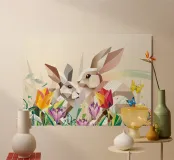 Due coniglietti di Pasqua in un mare di fiori alluminio dibond