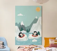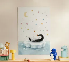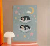 Due simpatici pinguini addormentati con elementi celestiali alluminio dibond