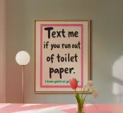 Questo cartello umoristico stampabile per il bagno è il complemento d'arredo perfetto per qualsiasi casa, appartamento o spazio abitativo condiviso. Caratterizzato dal testo in grassetto e simpatico "Mandami un messaggio se finisci la carta igienica. So che sei al telefono", questo download digitale aggiunge un tocco spensierato e moderno al vostro bagno. Progettato con un carattere elegante e giocoso e con una combinazione di colori rosa e beige, è un eccellente regalo di gag per le feste di inaugurazione della casa o un'aggiunta unica alla parete per motivare le buone abitudini di rifornimento della carta igienica. Scaricate, stampate e incorniciate questo poster digitale di alta qualità per il bagno.