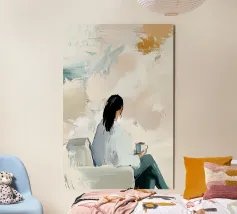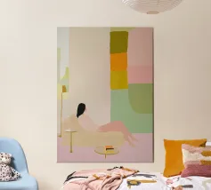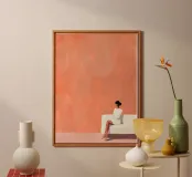 Una composizione di stile di vita minimalista in cui una figura solitaria riposa in un ampio campo di calde tonalità di pesca e terracotta. Le texture morbide e le forme contenute evocano spaziosità, chiarezza e autosufficienza emotiva. Quest'opera d'arte parla del comfort della solitudine e della forza tranquilla che si trova nell'avere spazio per respirare, pensare e semplicemente essere. Un pezzo sereno e fondamentale per interni moderni, scandinavi o contemplativi.