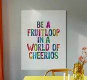 Essere un Fruitloop in un mondo di Cheerios Typografie Design alluminio dibond