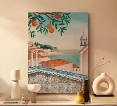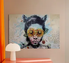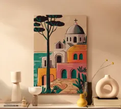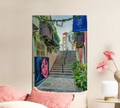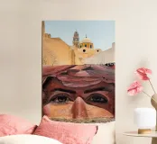 Tra le mura storiche di Santorini, in Grecia, uno sguardo intenso attira l'attenzione: un murale artistico di una donna i cui occhi sembrano guardare dritto nell'anima. Sullo sfondo si ergono la cupola e il campanile di una tipica chiesa greco-ortodossa. L'interazione tra street art e architettura storica racconta i contrasti, l'identità e l'espressività di questa affascinante isola.