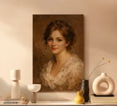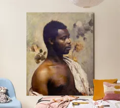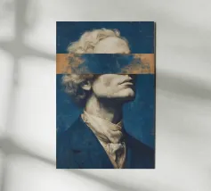 Un ritratto imponente e moderno di un uomo di profilo, il cui volto e la cui testa si dissolvono dolcemente in una struttura di pietra in rovina. L'opera gioca con l'idea di identità, transitorietà e pace interiore. I toni di colore neutri e sobri e l'espressione calma creano un'atmosfera di profondità e riflessione, ideale per spazi minimalisti di carattere e di impatto. LB