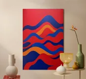 Un audace motivo astratto con un tocco di energia dinamica che simboleggia il movimento e la fluidità. Colori vivaci che evocano temi come l'acqua, la vita e il movimento. Una fusione innovativa di tradizione e modernità per interni contemporanei e minimalisti. Un linguaggio visivo unico che supera i confini culturali.