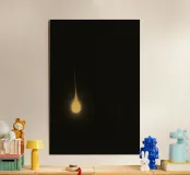 Da un vuoto più denso della mezzanotte emerge una singola esca gialla, la cui calda goccia di luce fa vorticare il plancton in orbite ipnotiche. Solo le più deboli nervature di una rana pescatrice in agguato si registrano sul bordo della tela, ricordandoci che ogni promessa di luminosità porta con sé un intento nascosto. La texture granulosa riproduce il modo in cui la materia particolata disperde i fotoni sott'acqua, mentre il nero circostante assorbe il pensiero e lo sguardo. È un momento di tensione tra curiosità e cautela, catturato in una scintilla tremante e senza tempo.