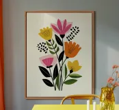 Audace, giocosa e artistica, questa opera d'arte botanica ispirata alla metà del secolo scorso porta lo spirito di Matisse nella casa moderna. Forme floreali sovradimensionate in toni retrò come il rosso pomodoro, il giallo senape, il corallo tenue e il verde acqua sono disposte in stile collage su uno sfondo chiaro. La composizione astratta bilancia il flusso organico con la chiarezza grafica, perfetta per creare un look vivace ma curato. Ideale come elemento di spicco in salotti, studi o spazi di lavoro creativi.