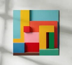 Forme geometriche colorate disposte in una vibrante composizione alluminio dibond