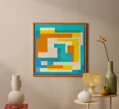Perfetto per gli spazi contemporanei o per gli amanti dello stile che apprezzano i colori vivaci e il design minimalista. Evoca un'energia calma ma dinamica, ideale sia per l'arredamento che per l'arte da indossare. Ha un impatto straordinario su stampe, capi d'abbigliamento, articoli di cancelleria o sfondi digitali Una miscela senza tempo di struttura e flusso, perfetta per i creativi che amano il design Combina linee pulite e ritmo astratto per creare un senso di equilibrio e intrigo visivo Ideale per gli appassionati di arte astratta e per chi ama i toni freddi, gli angoli e l'estetica moderna