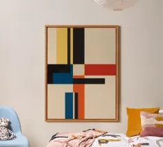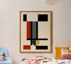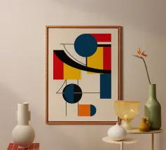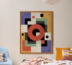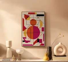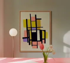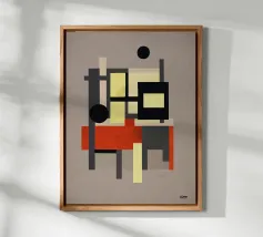 Si può rendere visibile la musica? Ci abbiamo provato una volta con le forme semplici e i colori chiari dei Suprematisti! Se volete sapere come potrebbe suonare questo quadro, potete suonare gli accordi qui: https://www.onemotion.com/chord-player/ Gli accordi di mi minore, si bemolle maggiore e re maggiore, con il loro suono malinconico e trascinante, sono molto diffusi nella scena musicale. Con un design minimalista e la riduzione all'essenziale, la musica viene rappresentata visivamente - un misto di Suprematismo e stile Bauhaus.