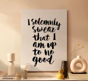 Scatenate il birichino che c'è in voi con la nostra incantevole stampa tipografica "Giuro solennemente che non sto combinando niente di buono". Questa frase iconica di Harry Potter, resa in una giocosa scritta nera disegnata a mano su un nitido sfondo bianco, cattura lo spirito di avventura e di magica malizia. Perfetto per i Potterhead e per i burloni, questo disegno versatile aggiunge un tocco di stravaganza magica a qualsiasi stanza. Disponibile su diversi prodotti, è un regalo ideale per i fan di tutte le età. Lasciate che questa affascinante stampa vi ricordi ogni giorno di abbracciare il vostro lato avventuroso e di essere sempre pronti per un po' di magico caos.