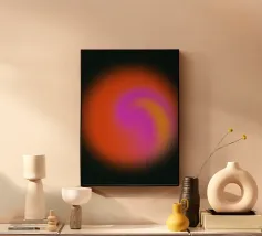 Potente, luminoso, atmosferico: questo motivo glow combina i toni caldi dell'arancione con il rosa intenso e il viola per creare un centro di colore luminoso. Come un centro luminoso, irradia energia, calore e calma allo stesso tempo. Perfetto per ambienti espressivi, studi creativi o come pezzo forte. Fa parte della collezione "Glow Forms", una serie in cui i colori diventano tangibili.