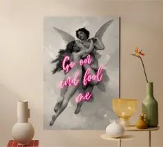 Abbracciate un fascino malizioso con "Go On and Fool Me", un'accattivante stampa pop art che fonde abilmente la ritrattistica classica con una sfida giocosa e contemporanea. Questa intrigante opera d'arte presenta un bellissimo personaggio storico, ornato da delicati fiori e da una sottile bolla di sapone. L'audace testo rosa caldo "GO ON AND FOOL ME" sovrasta l'immagine, aggiungendo una dichiarazione spiritosa e un po' provocatoria. È una fusione perfetta di eleganza senza tempo e umorismo moderno, ideale per aggiungere personalità e un tocco di spensieratezza a qualsiasi interno moderno. Realizzato ad un'eccezionale risoluzione di 7000x5000 pixel