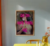 Abbracciate un fascino malizioso con "Go On and Fool Me", un'accattivante stampa pop art che fonde abilmente la ritrattistica classica con una sfida giocosa e contemporanea. Questa intrigante opera d'arte presenta un bellissimo personaggio storico, ornato da delicati fiori e da una sottile bolla di sapone. L'audace testo rosa caldo "GO ON AND FOOL ME" sovrasta l'immagine, aggiungendo una dichiarazione spiritosa e un po' provocatoria. È una fusione perfetta di eleganza senza tempo e umorismo moderno, ideale per aggiungere personalità e un tocco di spensieratezza a qualsiasi interno moderno. Realizzato ad un'eccezionale risoluzione di 7000x5000 pixel