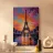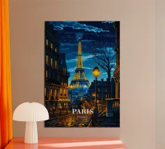Questa raffigurazione impressionista della Torre Eiffel mette in risalto il suo bagliore dorato durante le serene ore del crepuscolo. L'opera combina audaci pennellate di colori caldi con toni più freddi per creare un contrasto armonioso. I riflessi nella Senna accentuano la grandezza della torre, mentre le coppie che camminano lungo l'argine aggiungono una dimensione intima. La tavolozza luminosa e le pennellate dinamiche catturano la bellezza eterea del crepuscolo parigino, rendendo il dipinto un omaggio poetico al romanticismo e al fascino della Città della Luce.