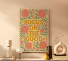 Un poster con citazioni di ispirazione vintage, con toni verdi e arancioni brillanti incorniciati da un bordo retrò ondulato. Progettato per portare positività e colore in qualsiasi spazio moderno.