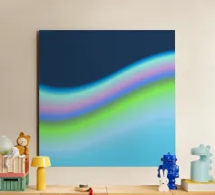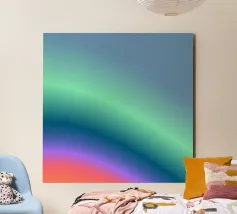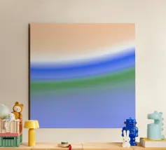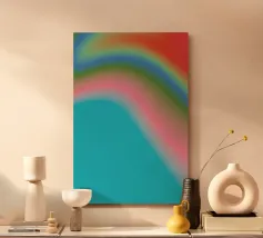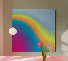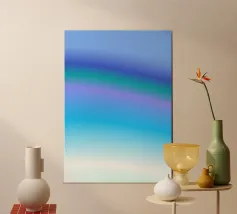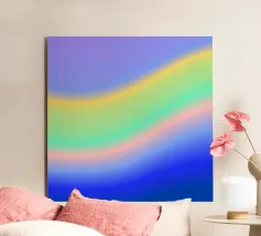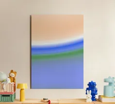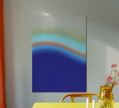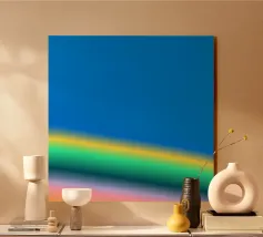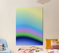 Questa delicata illustrazione mostra un arcobaleno in colori pastello con morbide sfumature di colore dall'azzurro al rosa, al giallo pastello e al verde chiaro. Le linee geometriche e le strisce strutturate danno un tocco moderno all'opera grafica e riflettono la natura. Un gioco armonioso di colori che irradia calma e gioia.