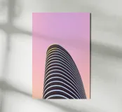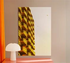 I balconi si impilano con precisione geometrica, sporgendo da facciate slanciate sopra la città. La scena evoca la densità, la struttura e la tranquilla individualità dell'architettura moderna.