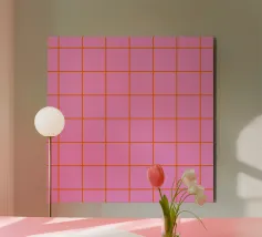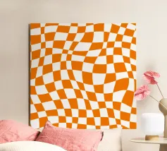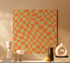 Alzate il tiro con questo design retrò a scacchiera rosso-arancio. I quadri e i blocchi di colore vivaci sono una dichiarazione audace, in equilibrio tra lo stile nostalgico degli anni '70 e il minimalismo moderno. Un pezzo d'arte da parete eclettico perfetto per aggiungere calore, energia e design vibrante all'arredamento della vostra casa.