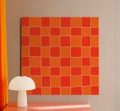 Alzate il tiro con questo design retrò a scacchiera rosso-arancio. I quadri e i blocchi di colore vivaci sono una dichiarazione audace, in equilibrio tra lo stile nostalgico degli anni '70 e il minimalismo moderno. Un pezzo d'arte da parete eclettico perfetto per aggiungere calore, energia e design vibrante all'arredamento della vostra casa.