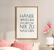 Questo design porta l'igiene con umorismo: "Lavati le mani, altrimenti qui non c'è niente da mangiare". Tipografia chiara, formulata in modo sfacciato e ideale per la cucina, l'ufficio, l'asilo nido o lo studio.