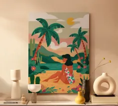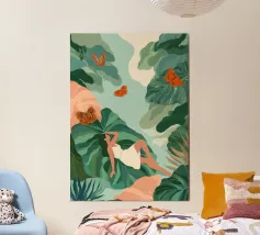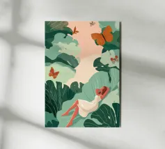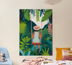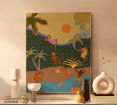 Immersa nel silenzio di un cielo color pesca, galleggia su un'amaca tesa tra le palme, senza peso, mentre il giorno scivola tranquillamente verso il tramonto. Le scimmie si appollaiano e giocano, le fioriture si avvicinano e l'intera giungla ronza con la comodità di non fare assolutamente nulla. È un momento fatto solo di luce del sole, di risate e di quiete, tenuto dolcemente tra le braccia del paradiso.