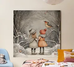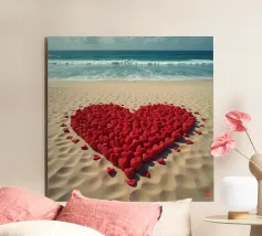 Un cuore colossale e consumato dalle intemperie fluttua serenamente sopra un vasto paesaggio incrinato, simbolo potente di un amore duraturo in un mondo desolato. Due piccole figure si ergono al suo cospetto, aggiungendo la scala epica e l'atmosfera cinematografica di questa opera d'arte surreale. Con i suoi toni vintage e le sue immagini che fanno riflettere, quest'opera è un invito alla conversazione e un tributo al grande viaggio dell'amore.