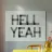 Questa immagine tipografica di grande impatto presenta la frase "HELL YEAH" in un carattere audace e strutturato che ricorda le pennellate dipinte a mano.
