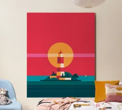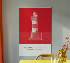 Questo rendering artistico del faro di Hörnum gioca con ombre drammatiche e motivi astratti per creare un irresistibile senso di profondità. Il contrasto tra le sue audaci strisce bianche e rosse e il tenue sfondo modernista ne accresce il fascino visivo. La composizione esalta la grandezza architettonica del faro, mentre l'approccio stilizzato gli conferisce un tocco contemporaneo, rendendolo un'aggiunta accattivante alle collezioni di opere d'arte ispirate al mare.