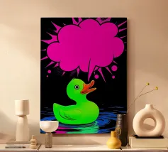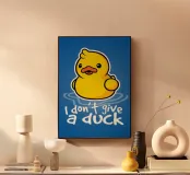 L'opera d'arte intitolata "I Don't a Duck" mostra un'atmosfera surreale e assurdamente umoristica che combina giochi di parole ed elementi visivi. Con uno stile di illustrazione minimalista e un approccio ironico al design, l'opera emana un senso di confusione. La stessa frase "I Don't a Duck" è al centro dell'attenzione e implica la negazione o la falsità dell'esistenza di un'anatra, il che aggiunge strati di significato e invita alla risata. Questo stile si inserisce nelle tendenze digitali dell'assurdismo, della cultura dei meme e del design sperimentale che si prendono gioco della logica quotidiana in forme visive uniche e fantasiose.