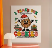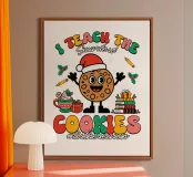 Un allegro biscotto con un cappello da Babbo Natale è circondato da decorazioni festive, libri e cioccolata calda. La scritta "Insegno ai biscotti più intelligenti #tistheseason" aggiunge un messaggio giocoso e a tema natalizio.