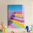 Pittura acrilica di scale a strisce rosa e gialle contro un cielo blu brillante. Composizione minimalista e geometrica con linee pulite, luce soffusa e una tavolozza di colori estivi di ispirazione rétro. Design moderno, accattivante ed equilibrato.