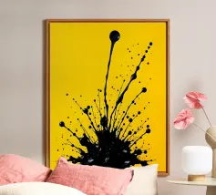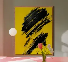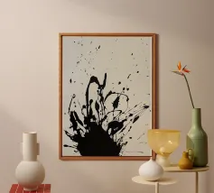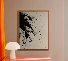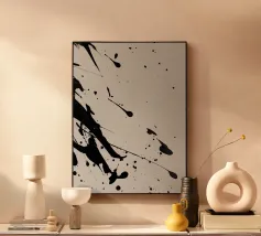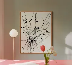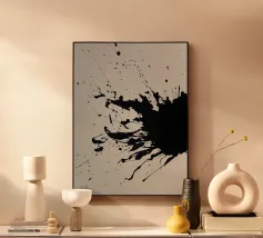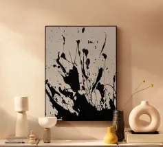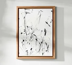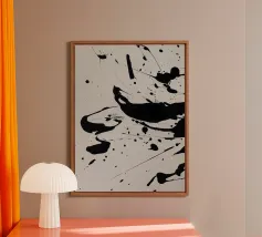 Splendida astrazione dinamica e audace di acrilici neri su una morbida tela neutra bianca. Sembra splendido praticamente ovunque. Se vi piace questo, date un'occhiata agli altri disegni di questa collezione.