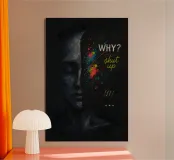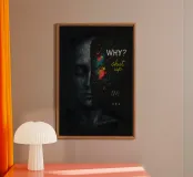 Metà del volto è monocromatico e scuro come la fuliggine, l'altra metà esplode in schizzi neon di fucsia, lime e ciano. In alto, le parole "WHY? shut up" (perché?) sono scarabocchiate come un pensiero frammentato, unendo l'emozione viscerale alla grafica di ispirazione punk. Linee frastagliate, punti e segni simili a glitch si disperdono nella composizione, imitando l'irrequieto chiacchiericcio mentale. Stampato su carta opaca da galleria con pigmenti d'archivio, questo pezzo tagliente si adatta a qualsiasi spazio - studi, dormitori o centri creativi - e invita a riflettere sul rumore interno e sulle parole che lasciamo in sospeso.
