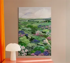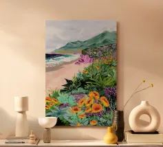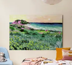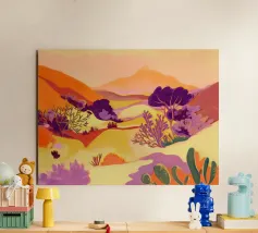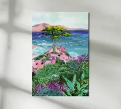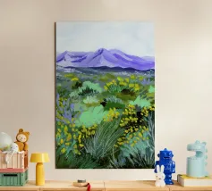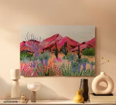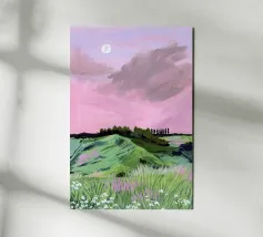 Sarah Gesek conferisce ai suoi paesaggi un'atmosfera da paese delle meraviglie ultraterreno con colori ricchi e porta mondi lontani nelle vostre case. L'artista di Seattle preferisce lavorare con colori acrilici su carta, ma anche con gouache, matite colorate, pastelli a cera e altro ancora. Ispirate dallo spettacolo naturale di rocce scoscese e giardini ondulati, notti stellate e cieli atmosferici, le opere di Sarah infondono un senso di vagabondaggio. Immergetevi, camminate e innamoratevi di nuovo del nostro mondo.