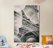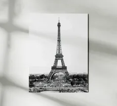 La Torre Eiffel è un punto di riferimento della capitale francese Parigi e simboleggia l'intera Francia in tutto il mondo. Una classica doppia esposizione della torre offre una visione dettagliata dei dettagli architettonici.