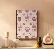 Latte alla fragola e simpatiche impronte di zampe alluminio dibond