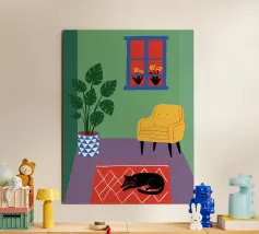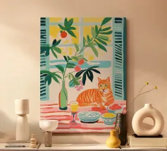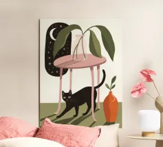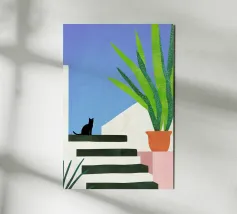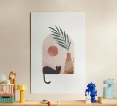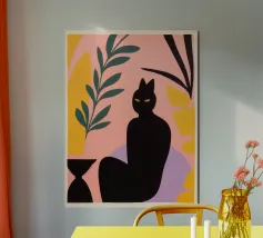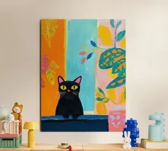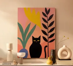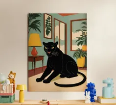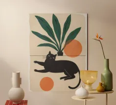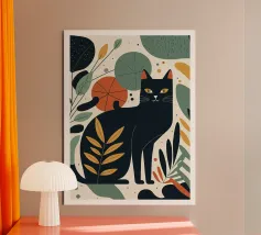 arte gatto nero, stampa gatto tropicale, poster astratto giungla, arte da parete animale moderna, illustrazione natura colorata, decoro felino audace, arte fauna minimalista, opera d'arte foglie tropicali, poster sole vibrante, decoro giungla boho, arte vaso geometrico, design gatto contemporaneo, stampa animale esotico, scena tropicale astratta, poster gatto artistico, decoro casa elegante, silhouette animale giungla, stampa moderna colorata, opera d'arte palma, arte tramonto giungla