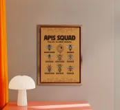 Questo affascinante disegno mostra nove diverse specie di api mellifere del genere Apis su uno sfondo uniformemente disegnato. Ogni ape è graficamente stilizzata ma fedelmente riprodotta ed etichettata con il suo nome scientifico, da Apis mellifera ad Apis dorsata. Al centro è presente un alveare decorativo che completa esteticamente il tema. Ideale per gli amanti della natura, gli apicoltori, gli insegnanti di biologia o come murale educativo nella stanza dei bambini o in classe.