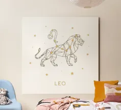 Adorabile e giocosa illustrazione del segno zodiacale del Leone. Questo Leone colorato e soffice, circondato da stelle e con un'espressione vivace, cattura l'energia calda e orgogliosa del segno. Perfetto per chi ama l'astrologia e cerca un tocco unico e divertente per il proprio spazio. Disponibile su vari prodotti e accessori per la casa
